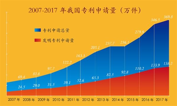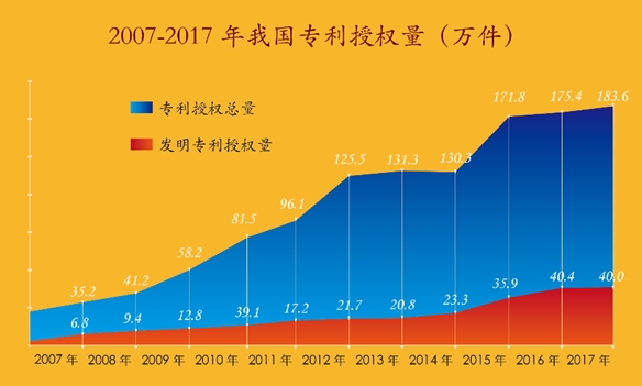 根据国家知识产权局提供的资料,我国已经建立起了符合国际通行规则、门类较为齐全的知识产权法律制度。截至2017年底,中国国内(不含港澳台)发明专利拥有量共计135.6万件,每万人口发明专利拥有量达9.8件,已经成为名副其实的知识产权大国。