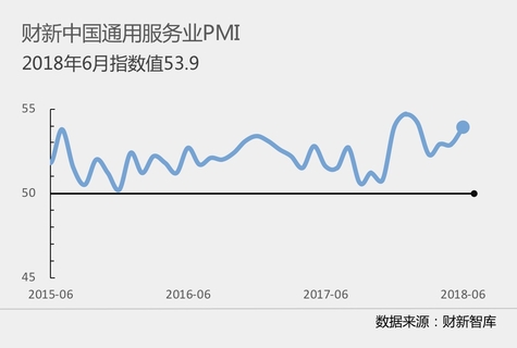 这一走势与统计局服务业PMI不同。国家统计局公布的6月服务业商务活动指数为54.0,与上月持平。