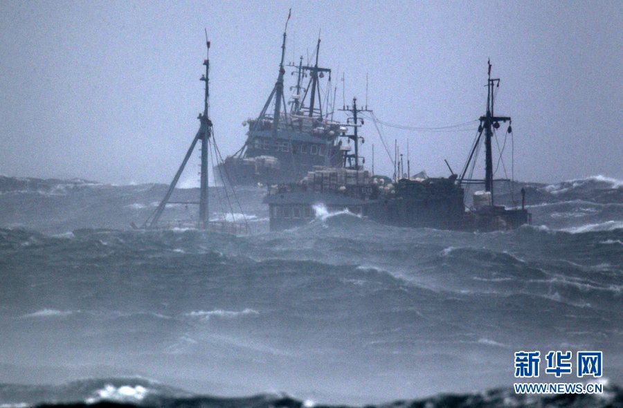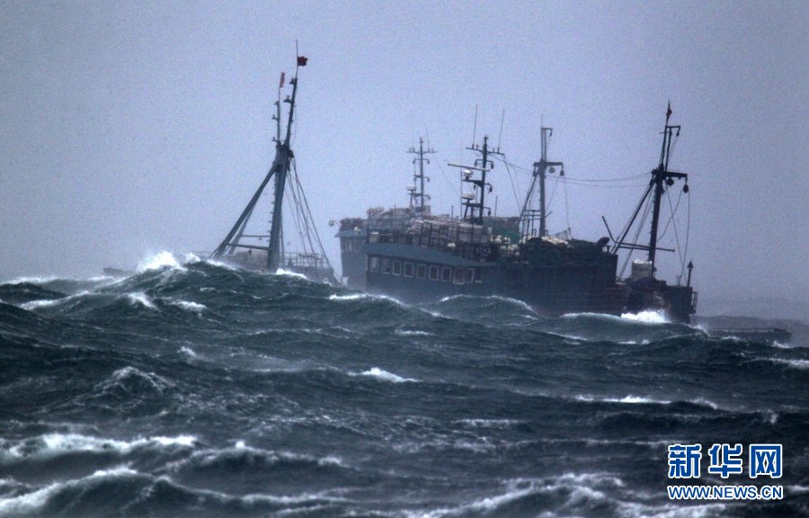 8月28日消息(图片摄于8月27日),漂浮在韩国济州西归浦近海的两艘中国山东威海籍渔船今天凌晨1时40分许遭台风“布拉万”袭击沉没。两艘渔船各载有17名船员,有31人失踪。其余3人中1人获救。另2人登陆济州岛,有1人负重伤,另一人出现呼吸困难。韩国海警已通报中国驻济州领事馆。图片来源:新华网