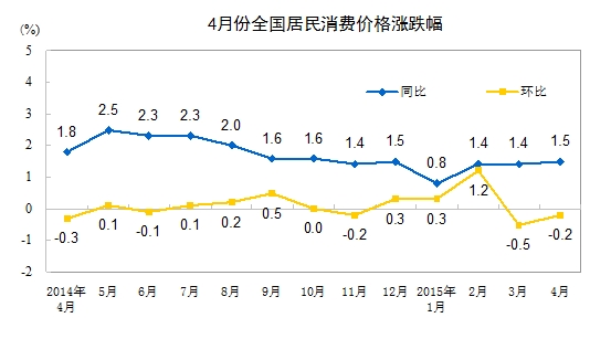 2015年4月份居民消费价格同比上涨1.5%