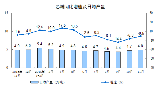 分产品看,11月份,统计的589种主要产品中有394种产品同比增长。其中,钢材9540万吨,同比增长1.7%;水泥21351万吨,增长3.7%;十种有色金属459万吨,增长2.3%;乙烯145万吨,下降0.5%;汽车300.0万辆,增长17.8%;轿车128.1万辆,增长6.4%;发电量5034亿千瓦时,增长7.0%;原油加工量4577万吨,增长3.4%。
