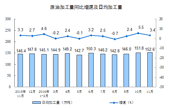 2016年11月份,规模以上工业增加值同比实际增长6.2%(下同,增加值增速均为扣除价格因素的实际增长率),较10月份加快0.1个百分点。从环比看,11月份,规模以上工业增加值比上月增长0.51%。1-11月份,规模以上工业增加值同比增长6.0%。