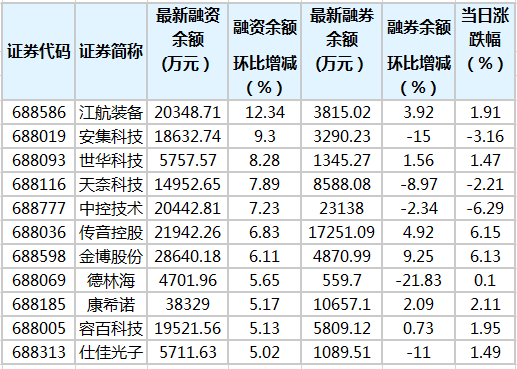 科创板融资余额增加4189.19万元 92股融资余额环比增加