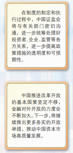 此外,证监会新闻发言人强调,中国推进改革开放的基本国策坚定不移,金融对外开放的力度会不断加大。下一步,将继续推出更多务实的开放举措,推动中国资本市场高质量发展。今年以来,中国经济持续稳定恢复、稳中向好,一大批优秀企业蓬勃发展,资本市场的优质投资标的不断增多。只要上市公司经营状况是好的、质量是高的、生态是不断改善的,自然会得到投资者的青睐。我们对中国资本市场的前景判断是可预期的,是可持续健康发展的。