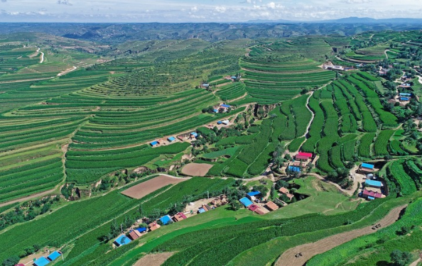 宁夏固原市彭阳县的梯田景观(新华社记者王鹏 摄)