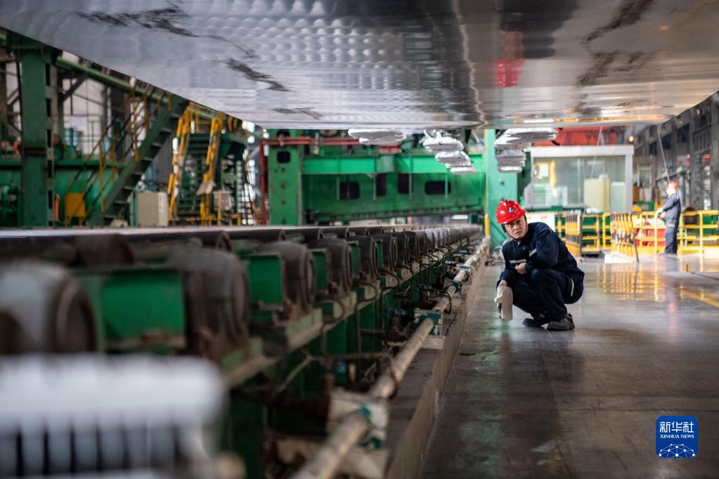 1月31日,在西南铝业(集团)有限责任公司生产车间,工人进行生产工作。新华社记者 唐奕