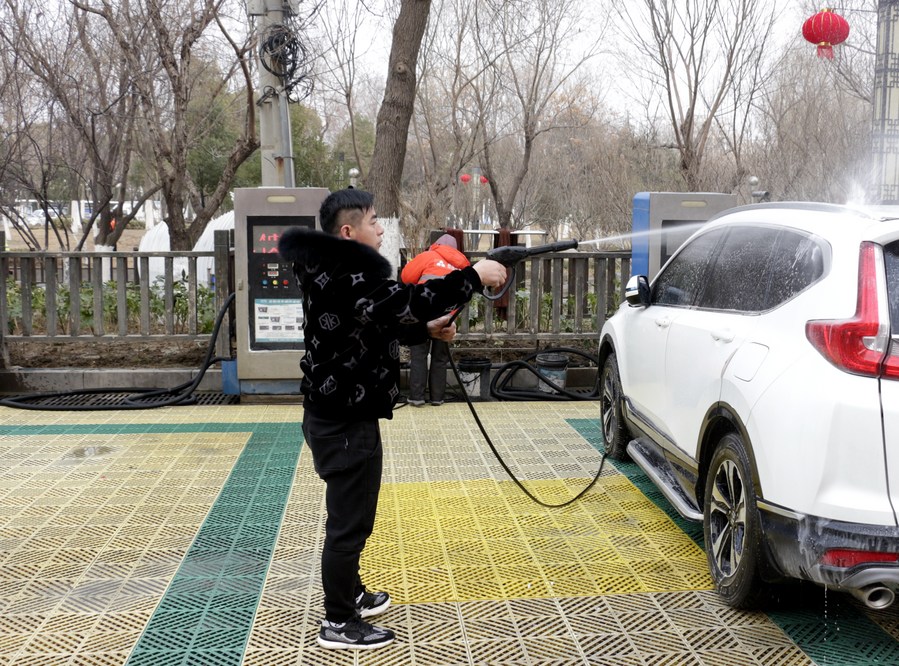 停车扫码、拿起水枪、喷洒车身……位于安徽省宿州市迎宾公园的一处自助洗车站,市民陶辉熟练地操作着,很快便将私家车冲洗干净。