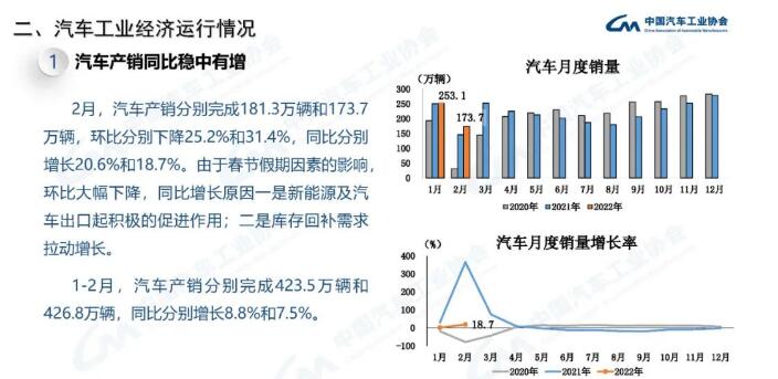 中汽协:2月份汽车销量同比上涨18.7% 新能源车增长184.3%