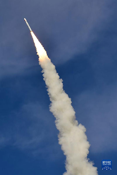 3月30日10时29分,我国在酒泉卫星发射中心用长征十一号运载火箭,成功将天平二号A、B、C卫星发射升空,卫星顺利进入预定轨道,发射任务获得圆满成功。新华社发(汪江波 摄)