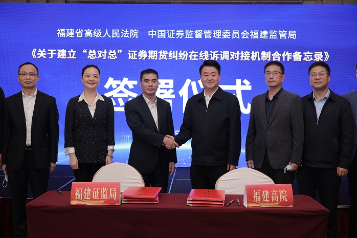 福建证监局与福建省高级人民法院签署“总对总”在线诉调对接机制合作备忘录
