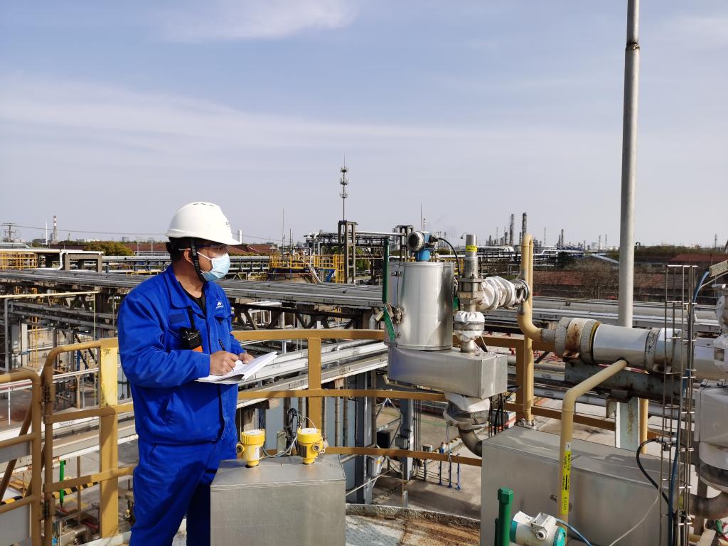 位于上海金山区的巴斯夫护理化学品(上海)有限公司工厂内,工人正在工作。受访者供图