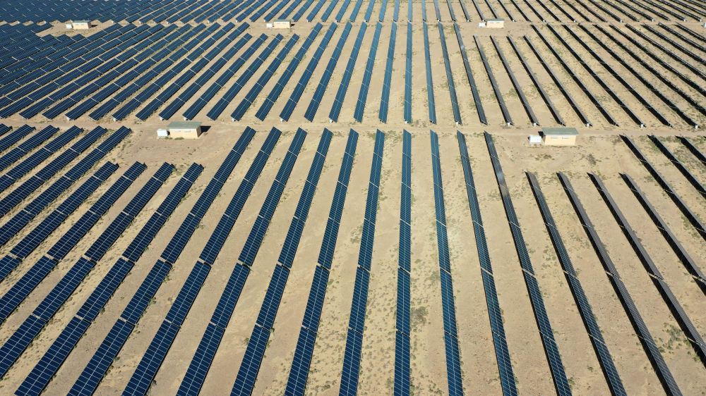 这是6月13日拍摄的甘肃省金昌市西坡光伏产业园区的光伏发电阵列(无人机照片)。新华社记者 陈斌 摄