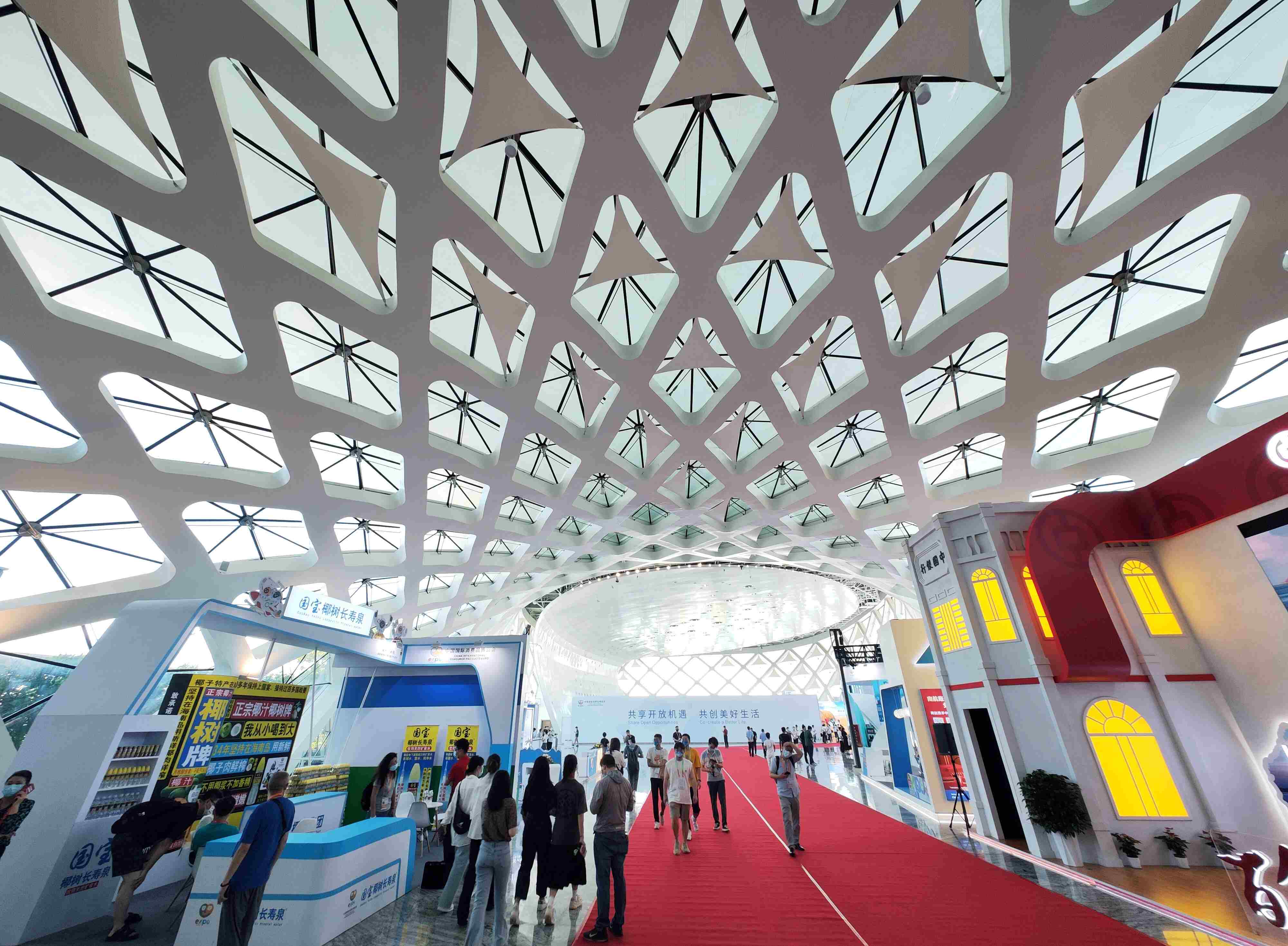 7月25日,观众进入消博会展馆。当日,2022年中国国际消费品博览会在海口开幕。消博会是我国首个以消费精品为主题的国家级展会,也是亚太地区规模最大的消费精品展。以“共享开放机遇 共创美好生活”为主题的本届展会吸引国内外2800余个品牌参展,600多个全球新品将在展会期间首发首秀。新华社图文