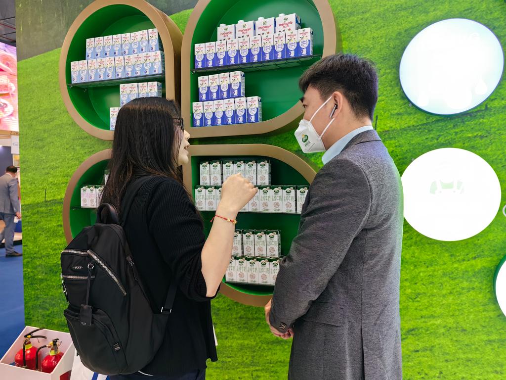 新西兰乳业品牌荷仕兰在本届进博会全球首发的一款零乳糖奶粉引起了王艳的兴趣。“中国有大量乳糖不耐受人群,这款新品主打的零乳糖、有机、高钙等概念,比较符合我对成人奶粉的采购预期。”