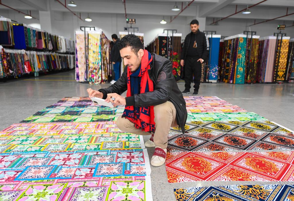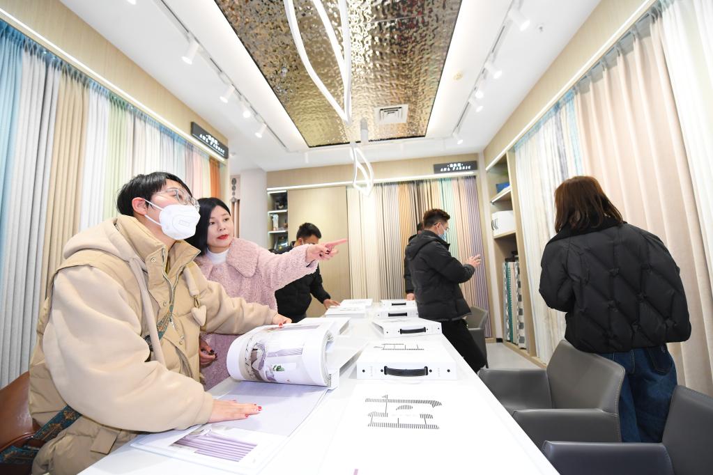 2月3日,在位于绍兴柯桥的中国轻纺城,从全国各地赶来的客商在北联市场选购窗帘。新华社记者翁忻旸摄