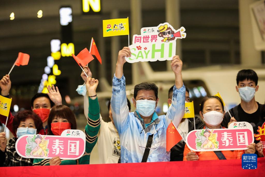 2月6日,中国暂停3年的旅行社出境团队旅游按下“重启键”。当天上午,泰国首都曼谷廊曼国际机场,泰国国家旅游局局长育他沙带着花环和礼品,专程来此迎接疫情三年来首批中国团队游客。