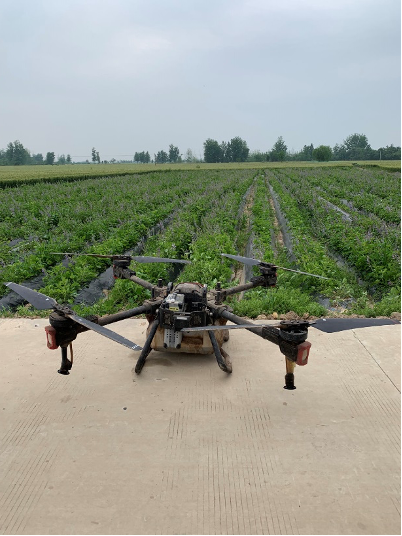 (张路口村邢寨自然村麦田加满农药的无人机 刘丽靓摄)