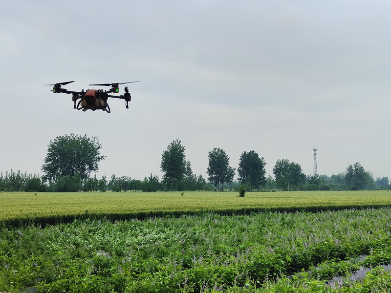 中国证券报记者来到安徽太和县大新镇张路口村邢寨自然村,一望无垠的绿色麦田里,一杆杆颀秀的麦子长势喜人。在田埂旁,中国证券报记者看到,一位农户正忙着给身边的无人机添加农药,在智能手机的操控下,满载农药的无人机从地头快速起飞,在麦田的上空按照预设航线来回穿梭,均匀地喷洒着,机身后一条雾状“丝带”,如绸布一般拂过麦田,泛起了层层麦浪。短短几分钟,一片麦田就喷洒完毕,无人机也回到了起点,科技感十足。