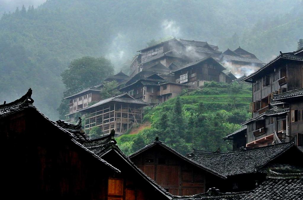 上千座吊脚楼从山顶延绵到山脚