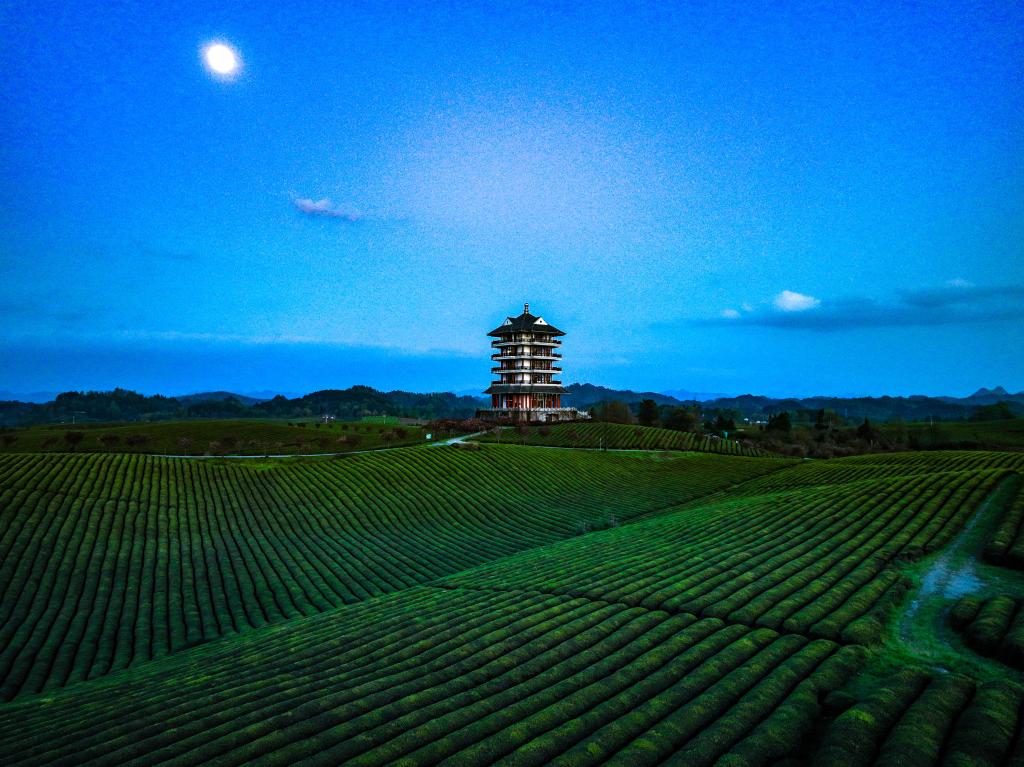 遵义市湄潭县永兴镇月光下的“万亩茶海”。新华社记者 欧东衢 摄