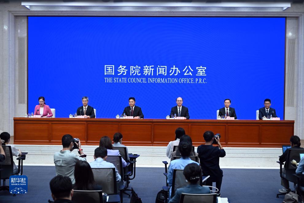 9月27日,国务院新闻办公室在北京举行新闻发布会,请商务部副部长盛秋平、交通运输部水运局负责人易继勇、商务部自贸区港建设协调司司长杨正伟、海关总署自贸区和特殊区域发展司司长陈振冲、国家外汇管理局外汇研究中心主任丁志杰介绍自贸试验区建设十周年有关情况,并答记者问。新华社记者 金良快 摄