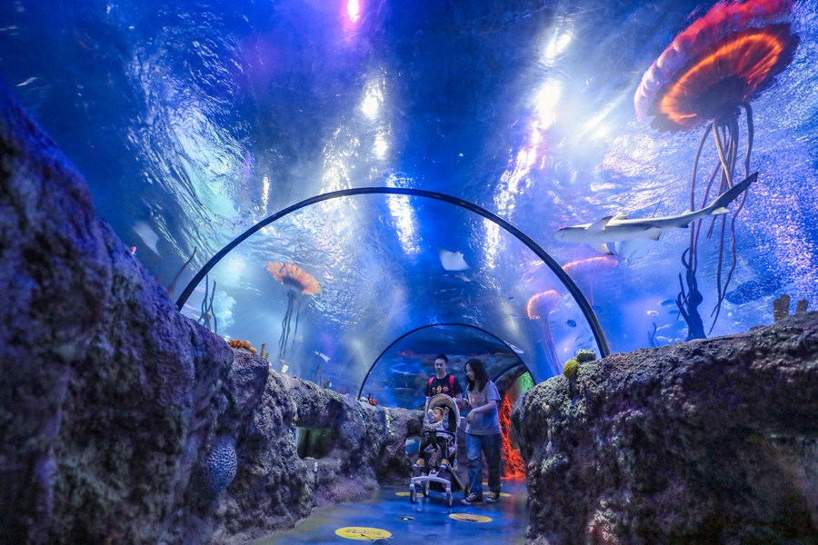 10月5日,游客在辽宁省沈阳海洋探索中心游览。新华社记者 龙雷 摄
