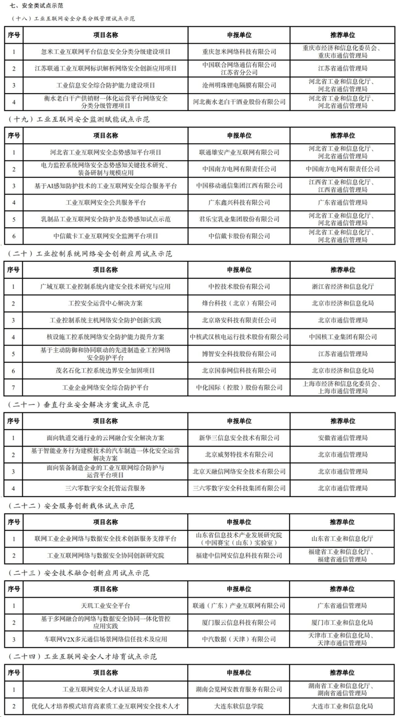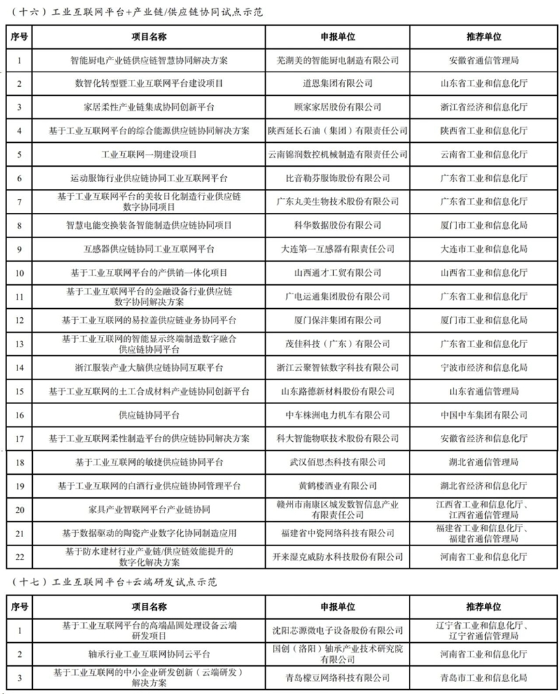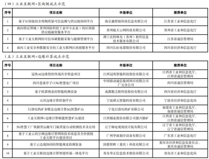 根据《工业和信息化部办公厅关于组织开展2023年工业互联网试点示范项目申报工作的通知》(工信厅信管函〔2023〕319号)要求,经企业自主申报、地方推荐、专家评审和网上公示,确定了 2023 年工业互联网试点示范项目名单,现予以公布。