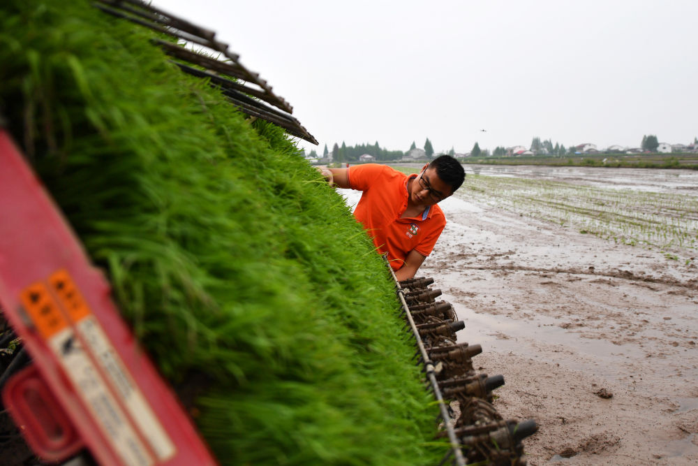 湖南省益阳市大通湖区宏硕生态农业农机合作社工作人员在整理秧苗。新华社记者 陈振海 摄