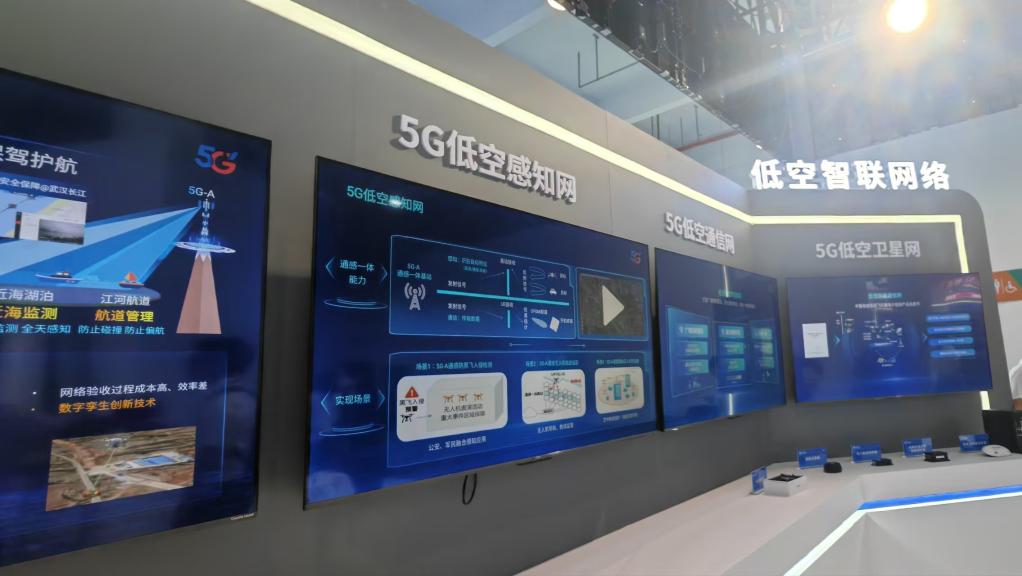中国电信集团有限公司展示的集通信、感知、智算为一体的低空数字化服务体系。新华社记者 王菲 摄