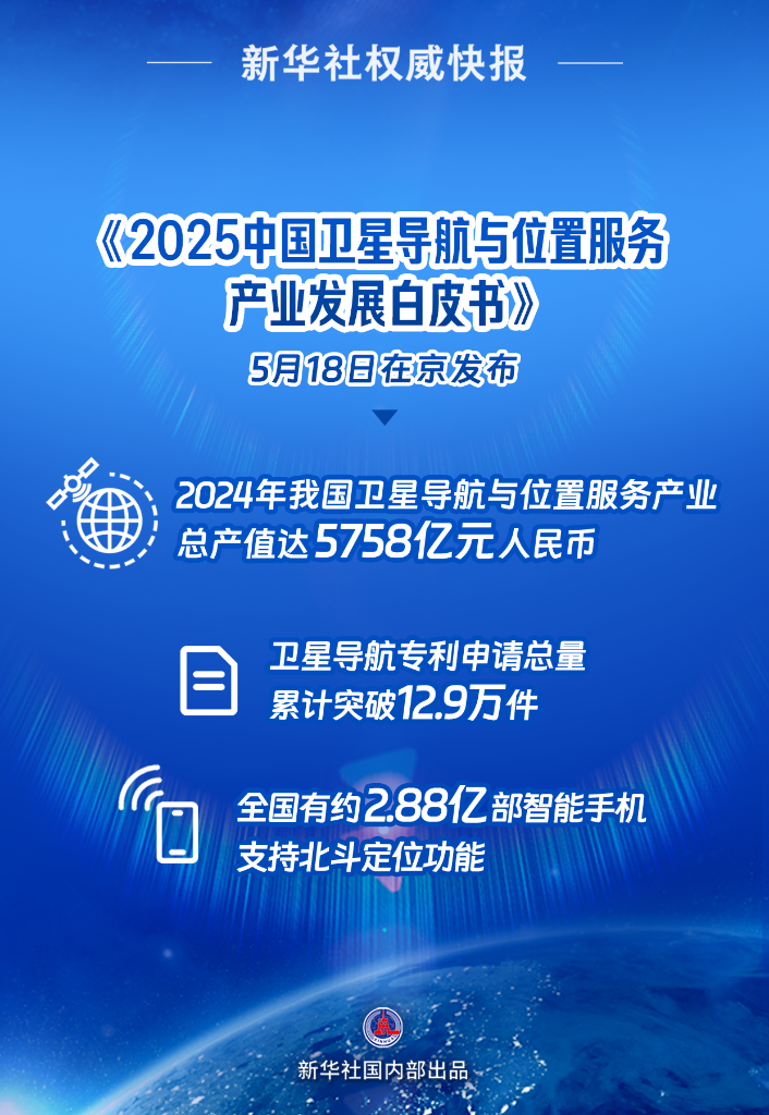5月18日在京发布的《2025中国卫星导航与位置服务产业发展白皮书》显示,2024年我国卫星导航与位置服务产业总产值达5758亿元人民币,同比增长7.39%;卫星导航专利申请总量累计突破12.9万件,继续保持全球领先……