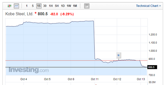 神户制钢周五盘初再次下跌逾9%,此前日经报导称超过30家非日本客户受到该公司数据造假影响,包括戴姆勒 和Airbus SE。