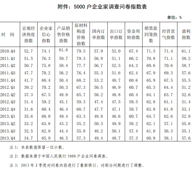 2013年第4季度中国人民银行企业家问卷调查结果显示: