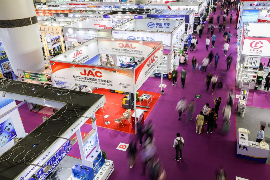 4月15日,客商在广交会汽配展区参观。新华社记者 刘大伟 摄
