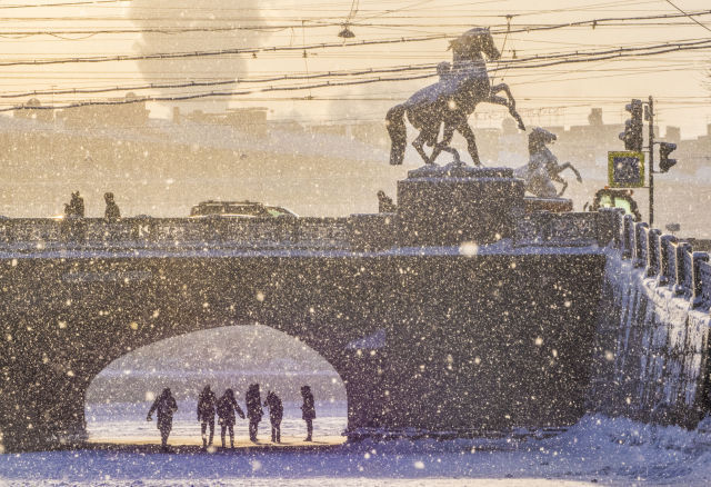 2016年1月17日,俄罗斯圣彼得堡,阿尼奇科夫桥一景。Ruslan Shamukov/塔斯社