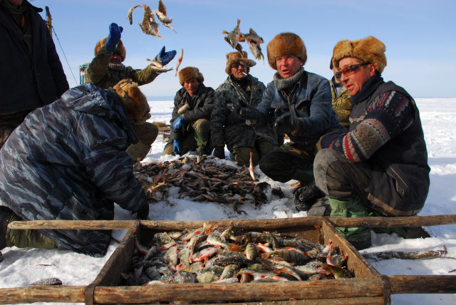 2009年3月,俄罗斯布里亚特共和国的捕鱼人。Rustem Safronov/今日俄罗斯电视台