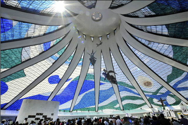 巴西利亚大教堂内景。Fa?bio Pozzembom/巴西国家传播公司