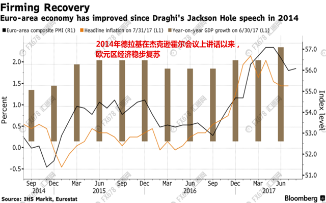 作者:来源:汇通网三年前的全球央行年会上,欧洲央行行长德拉基在讲话中曾冒险为QE奠定基础。当时,欧元区面临着通货紧缩的风险,失业率接近创纪录水平,经济增长乏力。现在这些担忧已基本消失,该行正准备讨论何时开始缩减购债规模。