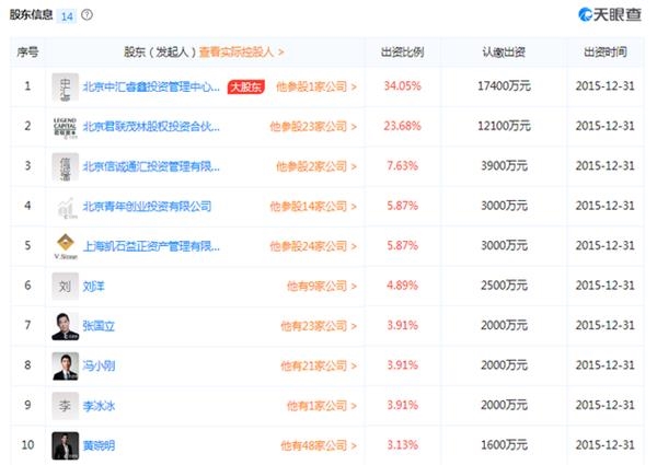 以北京君联嘉睿股权投资合伙企业为例,多位明星入股,包括黄晓明、张国立、冯小刚、李冰冰等。