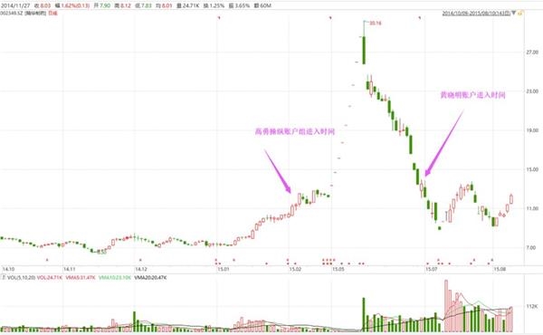 翻开精华制药股价走势图可见,高勇操纵前述4个账户组建仓精华制药获利之后,黄晓明账户在出货时起到了承接抛盘的作用,以免股价过快杀跌没有承接盘。根据证监会的披露,高勇在该股上的获利近9亿元,创造了操纵股票单只获利之最的纪录。