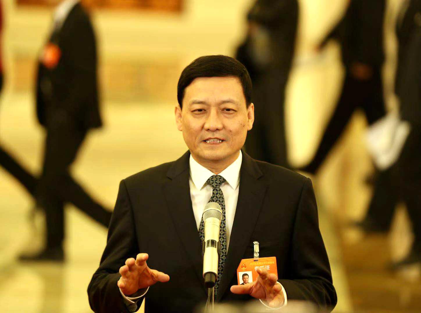 3月12日,十三届全国人大二次会议在北京人民大会堂举行第三次全体会议。这是国务院国资委主任肖亚庆在“部长通道”接受采访。中国证券报记者车亮摄影。