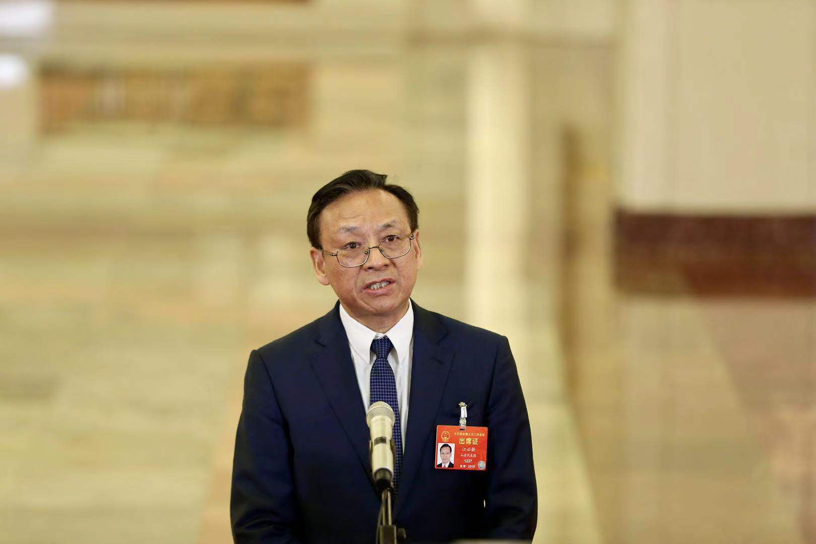 3月12日,十三届全国人大二次会议在北京人民大会堂举行第三次全体会议。图片为最高人民法院副院长江必新在“部长通道”接受采访。中国证券报记者车亮摄影。
