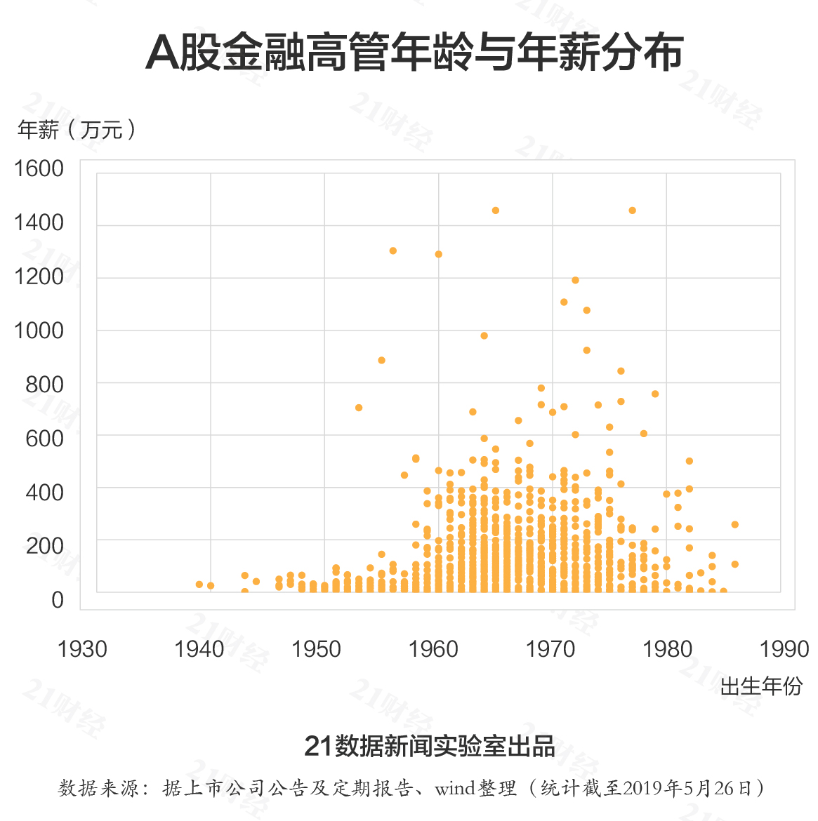 孰对孰错,我们用数据说话。此前,21数据新闻实验室推出金融机构月薪数据分析普通员工收入水平(详见《大数据告诉你:哪家金融机构月薪最高?》)。此次我们聚焦在券商、银行、信托、保险四大金融业74家A股上市公司1931位在职金融高管财富(2018年薪酬、分红及最新持股市值之和,均为税前数据),来看看“高大上”光环下的金领们身价到底几何。