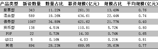 而受基础市场重新走牛的影响,股票型、混合型以及FOF产品在下半年逐渐发力,新设数量及募资规模出现明显提升,分别达到了343只、589只、22只,合计实现募资710.22亿元,占比近四成。而与2013年数据相较,权益类产品规模占比均出现了明显提升:股票型上行6个百分点至13%;混合型则增加了2个百分点。