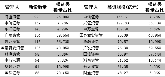 2、海通资管数量居首、中信证券规模领先、兴证资管权益类占比较高