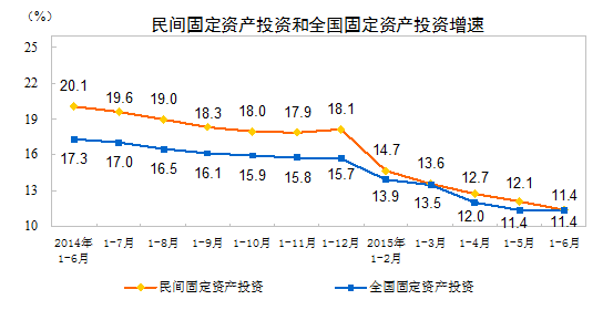 作者:佚名来源:中国网财经中国网财经7月15日讯 据国家统计局消息,2015年1-6月份,全国固定资产投资(不含农户)237132亿元,同比名义增长11.4%(扣除价格因素实际增长12.5%),增速与1-5月份持平。从环比速度看,6月份固定资产投资(不含农户)增长0.88%。