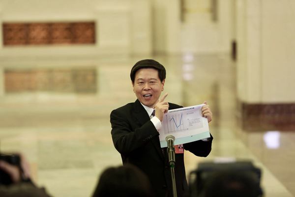 3月13日,国家税务总局局长王军在“部长通道”接受记者采访 车亮 摄