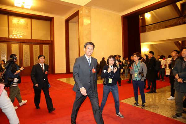 财政部部长刘昆被记者围堵 车亮 摄