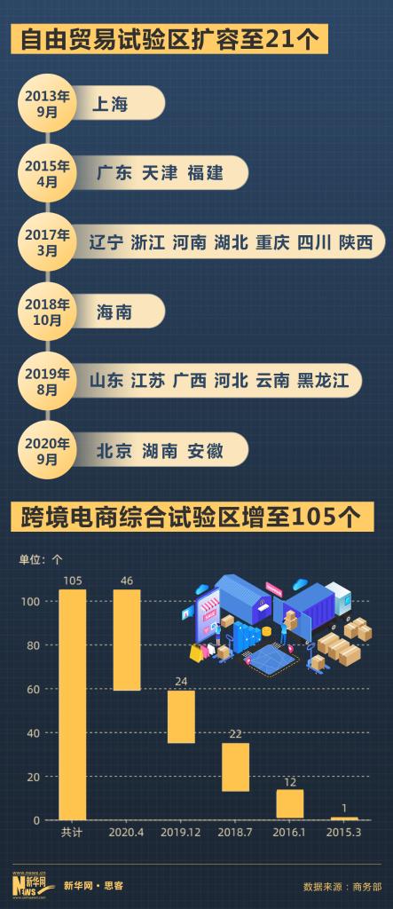 建设开放新高地,中国自由贸易试验区增至21个,跨境电商综合试验区增加到105个,依托海南自贸港和先行区的开放政策,海南加快建设国际旅游消费中心;持续优化营商环境,全国外商投资准入负面清单2020年由40条减到33条,首张海南自由贸易港外商投资准入负面清单仅27条;不断扩大双多边区域合作“朋友圈”,共建“一带一路”走深走实,中国同141个国家和32个国际组织签署“一带一路”合作文件,共同开展超过2000个合作项目……中国以实际行动,持续跑出对外开放“加速度”。