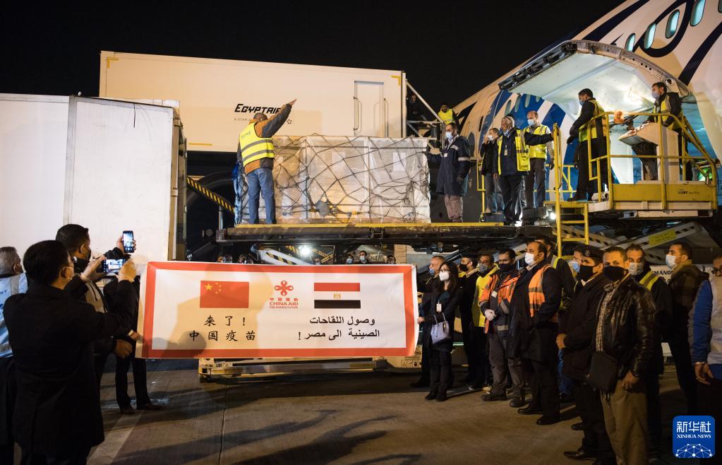 2021年2月23日,中国援助埃及的首批新冠疫苗抵达埃及开罗国际机场。新华社记者 邬惠我 摄
