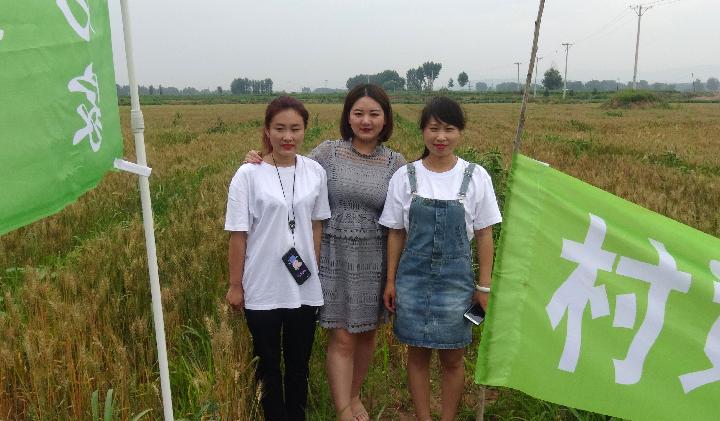 2018年6月 ,王颖(中)和同事在十家子村田间地头。(受访者供图)